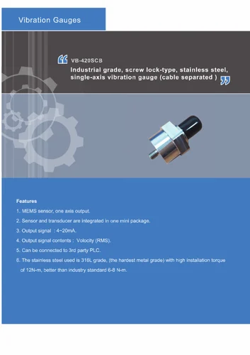 Industrial grade, Screw Lock-Type, Single-Axis Vibration Gauge (Separation Cable)